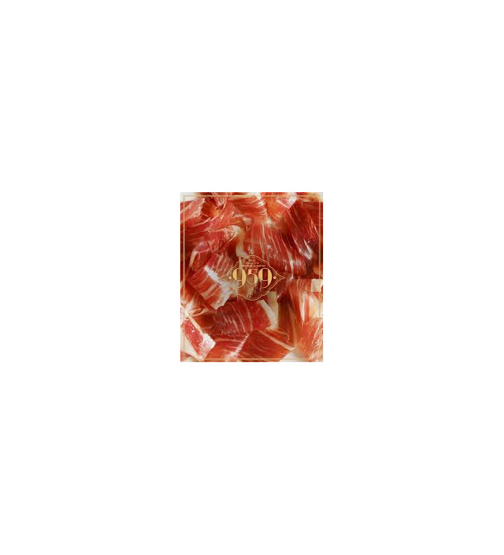 Su color va del rosa intenso al rosa finamente veteado por las grasas infiltradas, fruto de su dieta a base de bellotas durante la montanera.